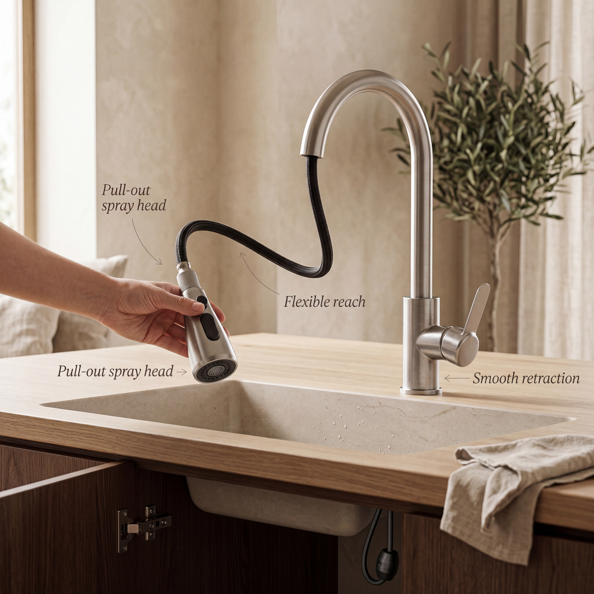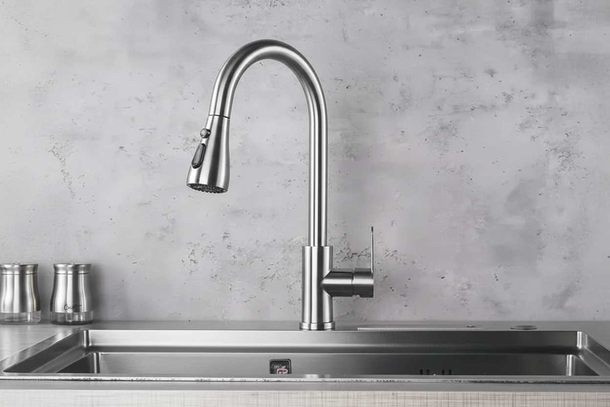 Maak kennis met de ultieme upgrade voor je keuken. Deze uittrekbare kraan combineert een modern ontwerp met praktisch gebruiksgemak. Het strakke roestvrijstalen design geeft je keuken een stijlvolle uitstraling en biedt tegelijkertijd extra functionaliteit.